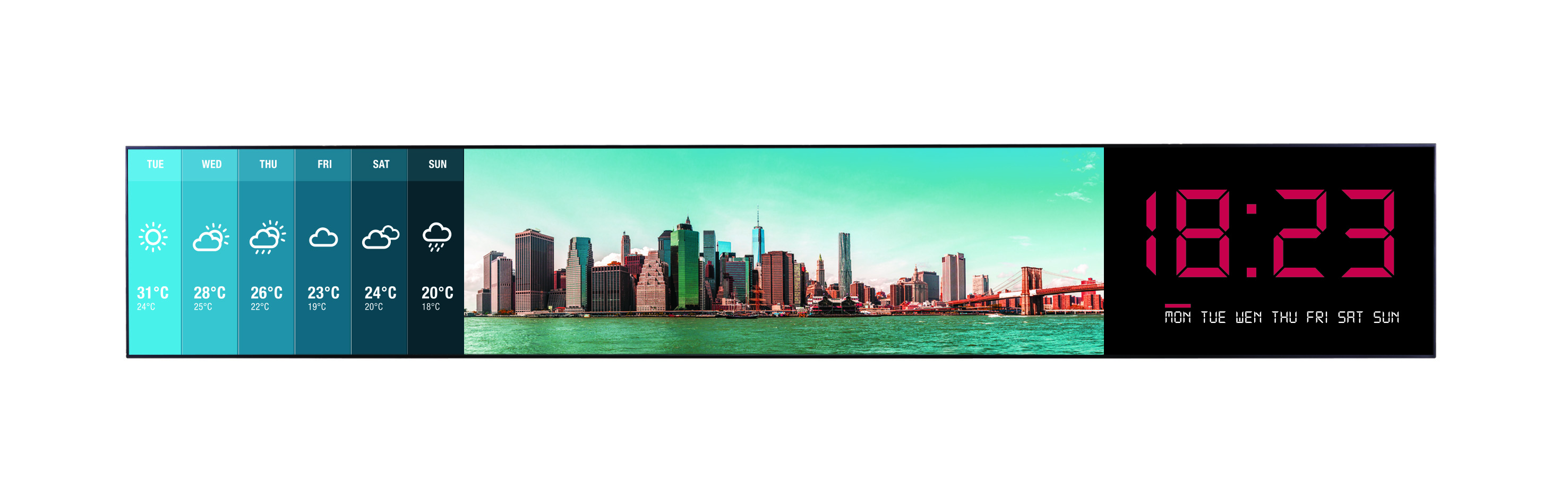 Con un innovativo formato 58:9, luminosità 500nit e una straordinaria risoluzione da 3840×600 pixel, questi monitor ridefiniscono il concetto di funzionalità nell’ambito del digital signage e permettono una modalità di comunicazione estremamente efficace e flessibile.