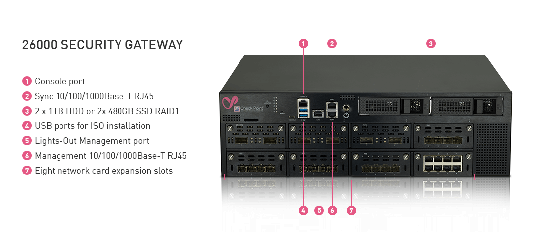 Dotati dell’architettura Check Point Infinity, i gateway 16000 e 26000 integrano Check Point ThreatCloud e la pluripremiata soluzione SandBlast Zero-Day Protection. Questi gateway modulari sono disponibili in modelli base, plus e turbo che forniscono fino a 24 Gbps di throughput di prevenzione contro le minacce Gen V, supportano standard di connettività fino a 100 Gbe e dispongono di opzioni di espansione fino a 64 interfacce di rete.