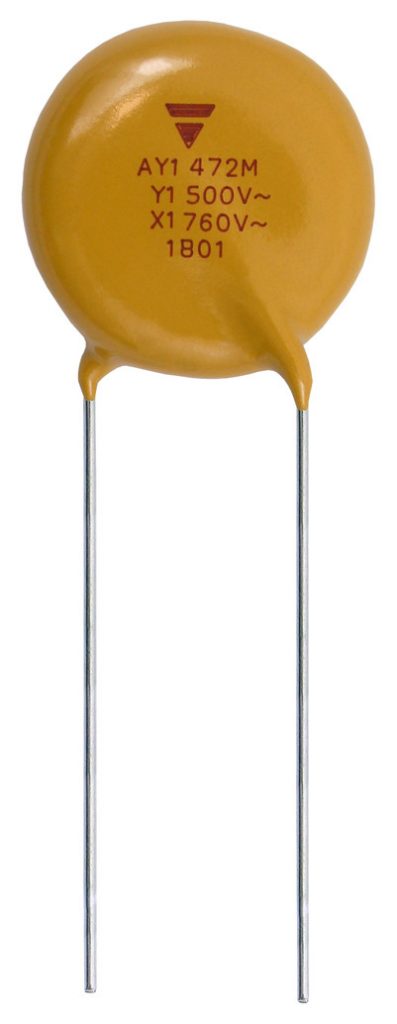 Le principali caratteristiche elettriche includono una gamma di capacità da 470 a 4700 pF con una tolleranza del 20% e tensioni nominali fino alla Classe X1 (760 VAC) / Y1 (500 Vca) e 1500 Vcc. Il disco in ceramica del condensatore è placcato in rame su entrambi i lati e presenta cavi di collegamento in rame stagnato e acciaio con diametri di 0,6 o 0,8 mm. Disponibili con conduttori diritti con passo di 10,0 o 12,5 mm, i dispositivi sono incapsulati in resina epossidica ritardante la fiamma, secondo UL94V0.