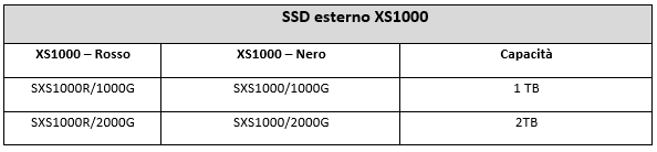 Il drive XS1000 è disponibile capacità da 1TB e 2TB ed è accompagnato da una garanzia limitata di 5 anni che include il supporto tecnico gratuito.