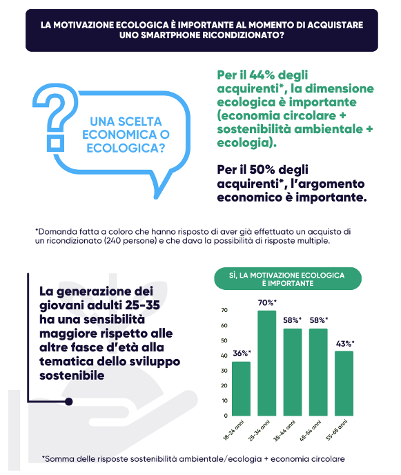 La motivazione principale tra chi opta per un dispositivo ricondizionato sembra essere il risparmio (ben il 50%), ma un significativo 44% lo considera prima di tutto una scelta per contribuire allo sviluppo sostenibile. Un interessante 14% lo sceglie invece per accedere a un maggior numero di modelli di fascia alta, con un budget più limitato.