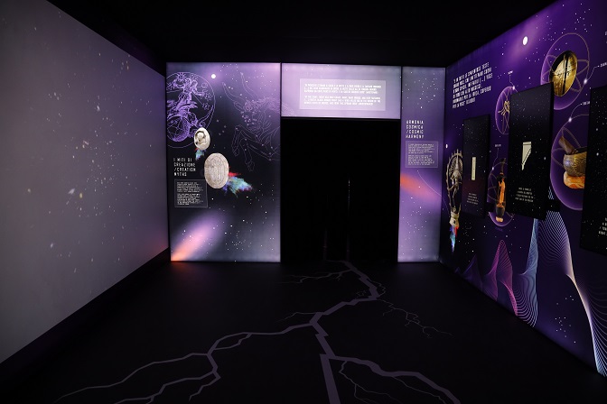 Il percorso, che si sviluppa in cinque tappe caratterizzate dagli elementi Aria, Fuoco, Eros, Acqua, Terra marcati dai colori Giallo, Rosso, Ultravioletto, Blu, Verde e da una serie di suoni e profumi, si svolge in modo cronologico con rimandi in basso alla linea del tempo, sulle pareti sono presenti continue analogie atemporali con l’arte, l’artigianato, le tradizioni, il folklore, la musica e i riti.