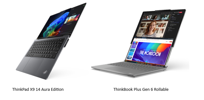 - ThinkBook Plus Gen 6 Rollable: un laptop abilitato all’intelligenza artificiale rivoluzionario con un display arrotolabile unico che si espande verticalmente da 14″ a 16,7″. Ridefinisce la produttività con funzionalità a schermo diviso, opzioni di visualizzazione virtuale e potenti processori Intel Core Ultra.