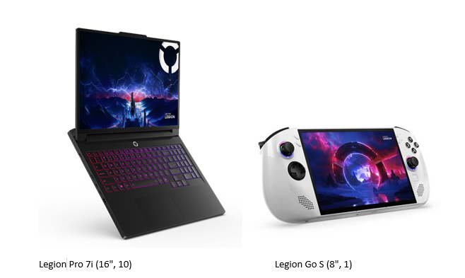 - Legion Go S (8″, 1) e Legion Go S (8″, 1) – Powered by SteamOS: un rivoluzionario dispositivo di gioco portatile alimentato da processori AMD e disponibile nelle versioni Windows o SteamOS, che offre una portabilità senza pari, giochi simili a console e transizioni senza interruzioni da PC a portatile.