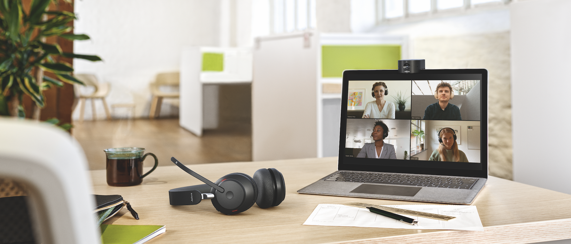 Se la qualità delle videoconferenze personali è garantita dalla soluzione PanaCast 20, è possibile incrementare le performance uditive in ascolto grazie alle soluzioni audio Jabra come ad esempio le cuffie Evolve che offrono la cancellazione del rumore passivo ed attivo nei modelli più evoluti. Come alternativa è possibile associare alla PanaCast 20 anche la gamma di altoparlanti Speak che consente di incrementare la qualità offerta dagli stereo dei classici computer portatili.