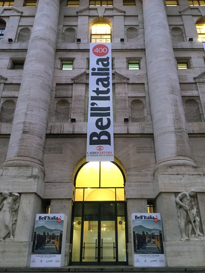 La mostra, realizzata in collaborazione proprio con Borsa Italiana, è dedicata ai 400 numeri della rivista Bell’Italia di cui vengono esposte le copertine, in aggiunta ad alcune fotografie di Gabriele Croppi tratte dal servizio che Bell’Italia dedica, sul numero di novembre, a Palazzo Mezzanotte. Potranno essere ammirate dai visitatori anche due illustrazioni originali di Francesco Corni che ricostruiscono la Milano romana e il suo teatro, i cui resti sono visibili nell’Area Scavi del palazzo.