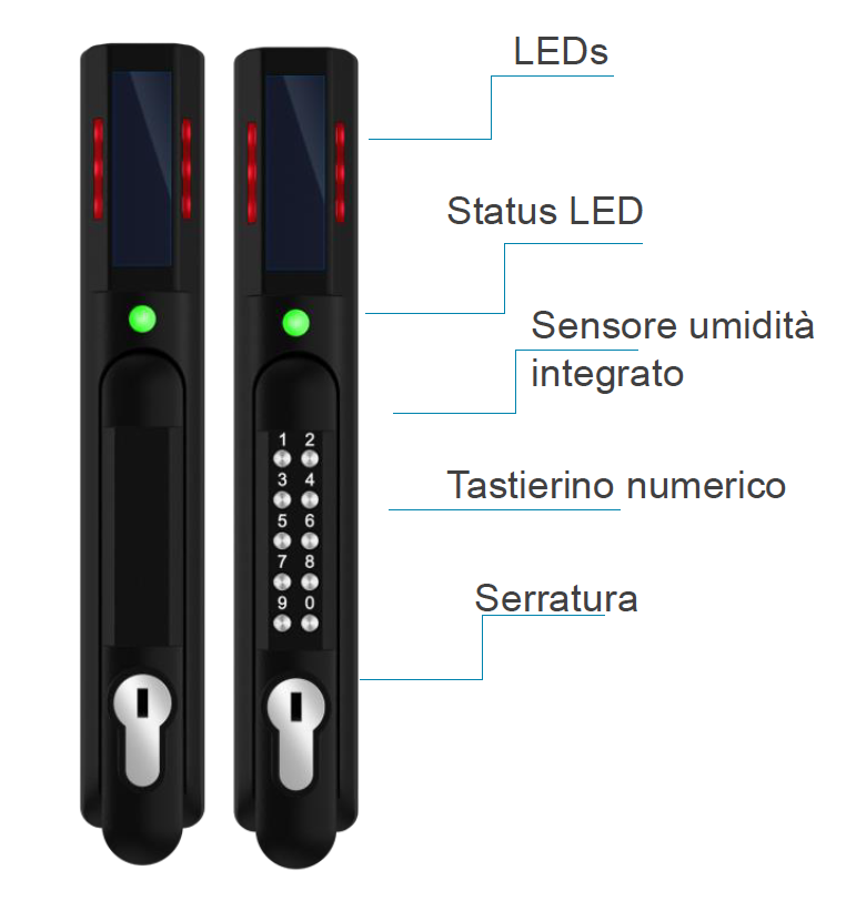 Con la possibilità di poter scegliere se integrare un tastierino integrato per l’autenticazione a due fattori, le maniglie elettromagnetiche offrono maggiore sicurezza grazie al controllo accessi (fino a 200 accessi) e al monitoraggio ambientale. E’ presente infatti un sensore di umidità integrato e un lettore di prossimità multi-frequenza.
