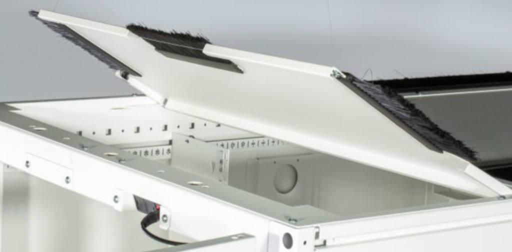 Panduit FlexFusion si caratterizza inoltre per montare un tetto alzabile o rimuovibile, facilitando così l’accesso ai cavi di alimentazione delle PDU o a quelli in fibra ottica o in rame installati. E’ possibile anche scegliere la tipologia di sistemi per l’ingresso cavi: a spazzola o CoolBoat.
