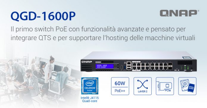 QNAP Systems, azienda innovatrice per le soluzioni di calcolo, rete e archiviazione, ha annunciato il nuovo switch PoE gestito QGD-1600P. In quanto primo switch avanzato al mondo, il QGD-1600P offre la gestione di rete, funzionalità archiviazione dei dati e calcolo grazie al supporto per QTS e la virtualizzazione.