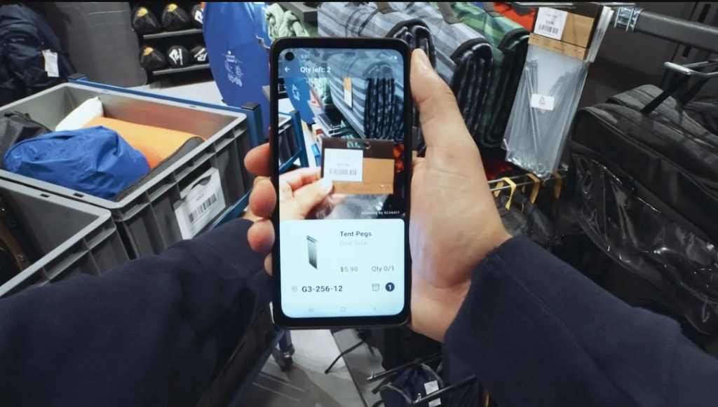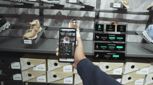 Una volta che il cliente ha fatto la sua scelta, l’addetto può scansionare immediatamente l’articolo sullo scaffale, per individuarne la taglia, il colore e la forma corretta, visualizzata grazie a un AR overlay.