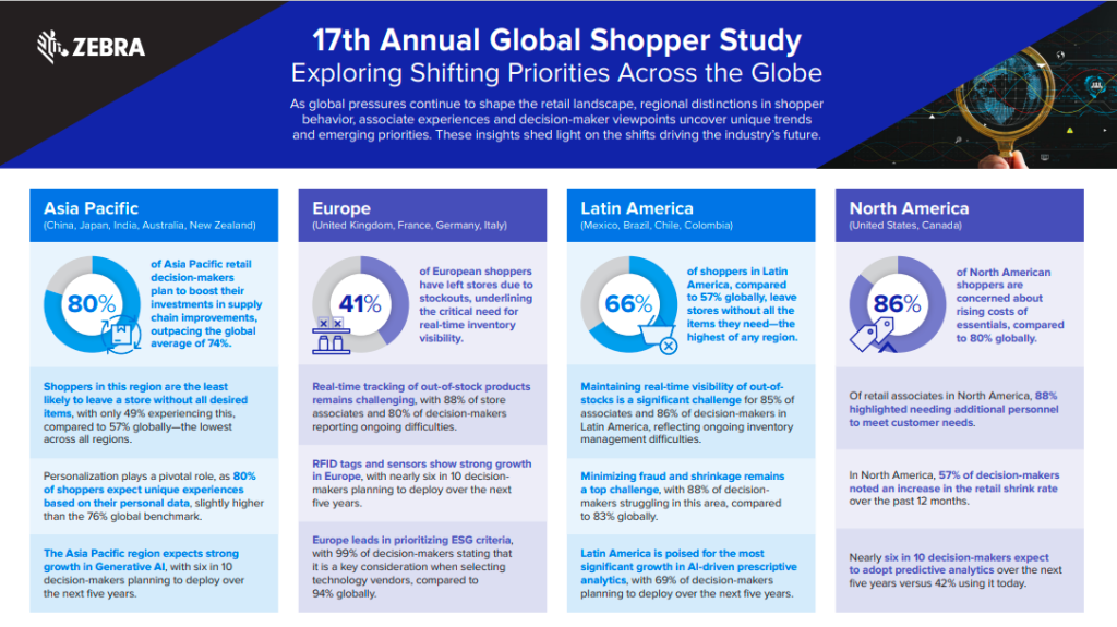 Zebra Technologies Corporation, leader mondiale nella digitalizzazione e nell’automazione delle attività in prima linea, ha annunciato i risultati del suo 17° Annual Global Shopper Study. I dati mostrano che non sono solo i consumatori a essere preoccupati per l’impatto di furti e crimini sull’esperienza in negozio. Otto retailer su dieci (87% in Europa) esprimono preoccupazione per la mancanza di tecnologie volte a individuare minacce alla sicurezza o attività criminali.