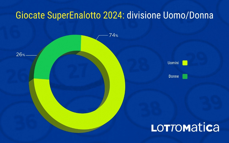 Come emerso anche in altre indagini condotte dagli Osservatori Lottomatica, la maggior parte del pubblico che gioca è di sesso maschile. Nel 2024, oltre l’80% delle giocate MillionDay è stata effettuata da uomini, mentre per l’Osservatorio Lotto la percentuale maschile raggiunge il 67%. Per quanto riguarda i numeri del SuperEnalotto, il 74% delle giocate proviene da giocatori maschi, contro il 26% delle puntate femminili. Si tratta di una differenza significativa, che si riscontra trasversalmente in tutte le fasce d’età, anche se inferiore rispetto a quanto rilevato nei mesi precedenti dallo stesso Osservatorio MillionDay.