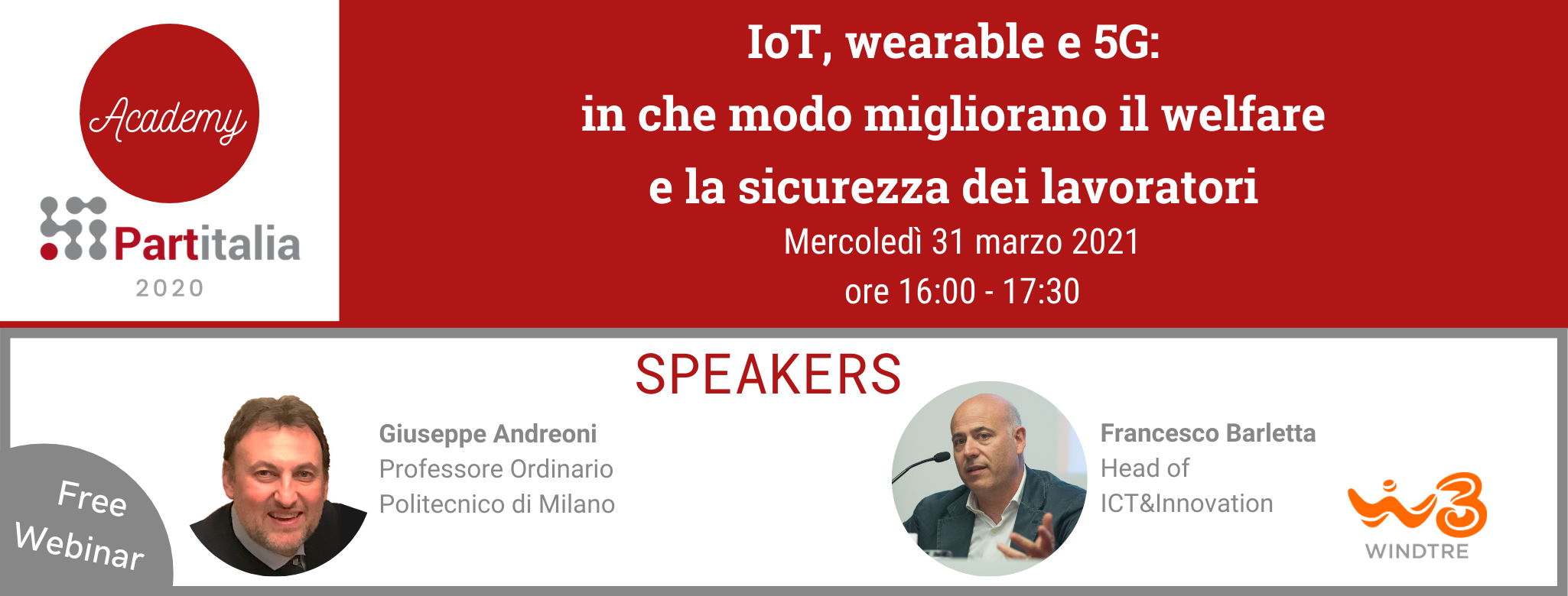 Questi temi saranno approfonditi nel corso di “IoT, wearable e 5G: in che modo migliorano il welfare e la sicurezza dei lavoratori”, il nuovo webinar di “Partitalia Academy”, l’accademia di formazione gratuita sulle nuove tecnologie promossa da Partitalia.