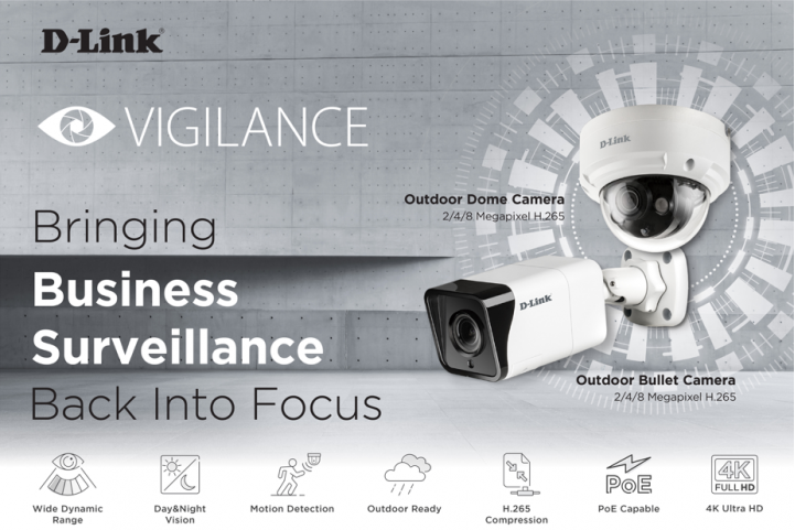 D-Link annuncia un aggiornamento completo della propria gamma di videocamere per la sorveglianza, Vigilance. Le nuove videocamere offrono una risoluzione fino a 4K Ultra HD e funzionalità di videosorveglianza indoor/outdoor – perfette per le PMI e le aziende che cercano una soluzione professionale estremamente vantaggiosa.
