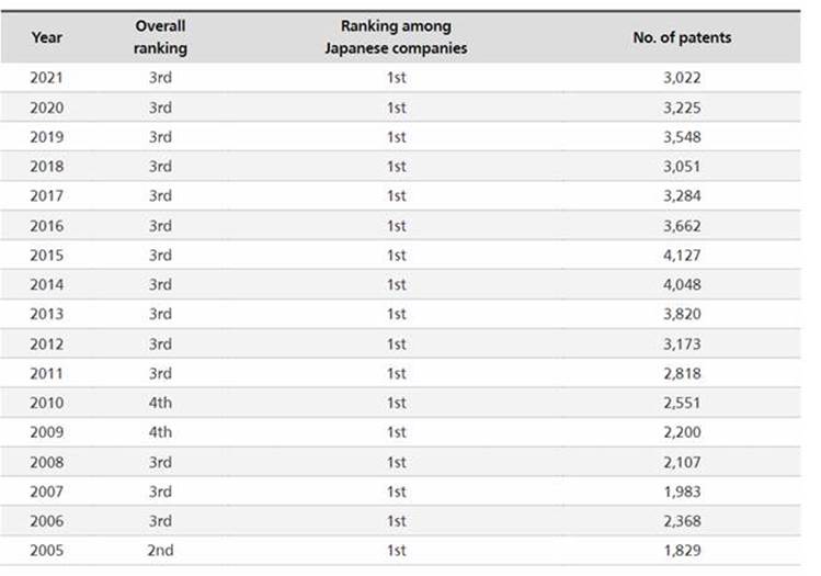 Canon ha annunciato di essersi classificata al terzo posto per numero di brevetti rilasciati negli Stati Uniti nel 2021, diventando l’unica azienda al mondo a essersi attestata tra le prime cinque posizioni per 36 anni consecutivi. Lo dicono i numeri dell’ultima classifica preliminare rilasciata da IFI CLAIMS Patent Services.