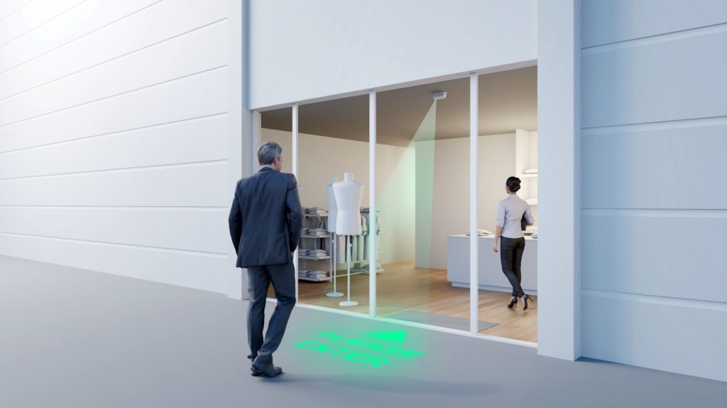 Nello specifico, Ulisse utilizza una tecnologia basata su sensori Internet of Things a bassa complessità e algoritmi avanzati di Intelligenza Artificiale, mediante i quali è possibile ottenere facilmente tutta una serie di KPI propri delle attività dei clienti. I sensori sono in grado di rilevare i flussi di persone tanto all’interno quanto all’esterno di uno spazio fisico e di identificare eventi di affollamento, inviando in tempo reale i dati e le coordinate spaziali al sistema di proiezione, che in maniera dinamica visualizza pattern luminosi o messaggi visuali sul pavimento del negozio.