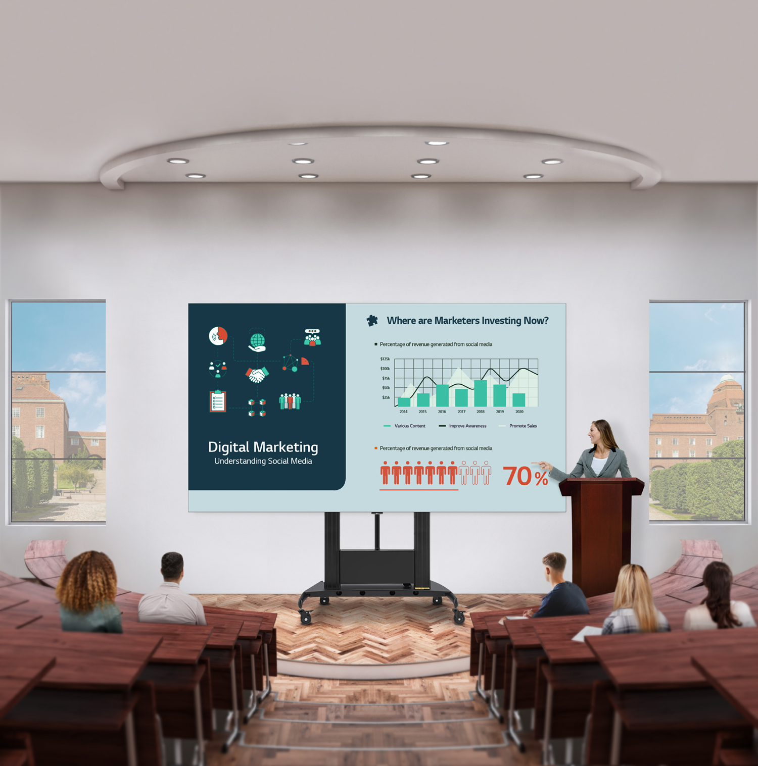 Come sottolineato in una nota ufficiale da Luca Russo, Sales Head Information Display Italy di LG Electronics Italia: «Abbiamo visto in questi mesi quanto la tecnologia possa essere un valido alleato in situazioni di emergenza come quella che stiamo vivendo. La nostra tecnologia all’avanguardia e le nostre soluzioni di Digital Signage rispondono, in modo puntuale ed eccellente, anche alle nuove esigenze in campo business e ci consentono importanti evoluzioni dal punto di vista delle applicazioni professionali possibili. Grazie alla semplicità di installazione e di utilizzo gli schermi LED da 136” consentono ai nostri clienti di trasformare qualsiasi spazio in un ambiente digitale in modo rapido e semplificato».