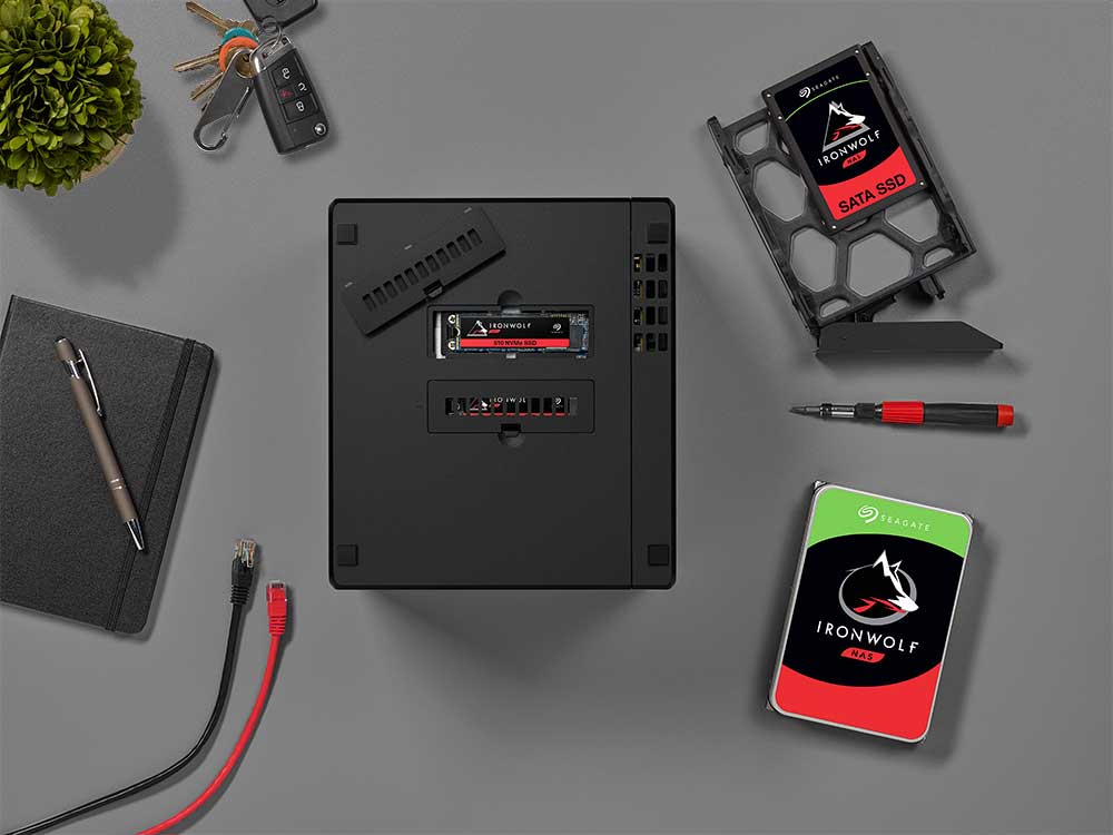 Combinando le unità disco rigido IronWolf con le unità IronWolf SSD si può usufruire di elevate prestazioni di capacità e di resistenza oltre alla memorizzazione nella cache ad alta velocità.