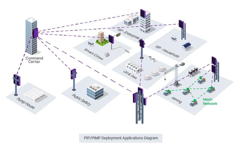- Radio singola a 5 GHz con velocità fino a 1.200 Mbps e supporto fino a 16 dispositivi in configurazioni PtMP.