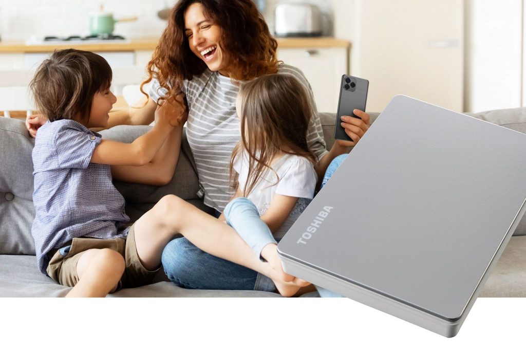 Con un design sottile e leggero nell’elegante colorazione silver, Canvio Flex di Toshiba è progettato per funzionare in modo intercambiabile con le principali piattaforme e sistemi operativi, offrendo la massima flessibilità di archiviazione. Grazie alla perfetta combinazione di compatibilità e portabilità, è la il regalo ideale per la festa della mamma: è pensato per tutte le mamme digitali di oggi che si destreggiano contemporaneamente tra mille impegni famigliari e lavorativi, più dispositivi e tantissimi file. Inoltre, grazie ai cavi USB-A e USB-C inclusi è possibile connettersi facilmente ai vecchi e nuovi dispositivi, senza nessun adattatore.