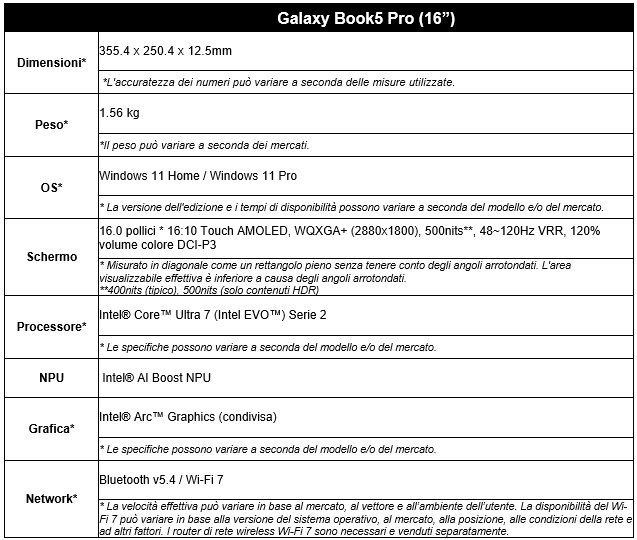 Galaxy Book5 Pro 360, Galaxy Book5 Pro e Galaxy Book5 360 saranno disponibili in Italia a partire da fine gennaio.