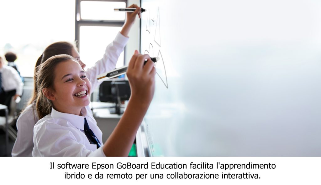 Epson presenta GoBoard Education, la soluzione per la didattica collaborativa e creativa che facilita l’apprendimento ibrido e da remoto con più tecnologie, elementi fondamentali per utilizzare al meglio i nuovi metodi di apprendimento con display interattivi utilizzati in qualunque spazio avvenga la didattica (casa e scuola in primis, ma non solo).