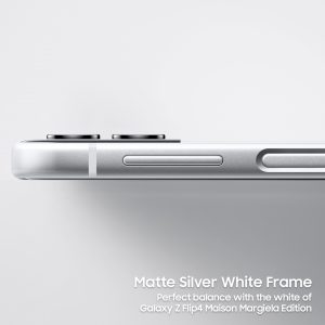 L’esclusivo Samsung Galaxy Z Flip4 Maison Margiela Edition sarà disponibile in paesi selezionati, tra cui Cina (Hong Kong), Francia e Corea, a partire dall’1 dicembre 2022.