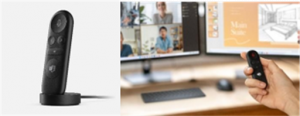 Questo telecomando abilitato per Teams è uno strumento utile per le presentazioni, infatti, consente scorrere le diapositive in modo veloce, disattivare l’audio, attirare l’attenzione del pubblico con il puntatore sullo schermo e partecipare rapidamente a una riunione, sia in sala sia tramite Microsoft Teams o altre app per riunioni.