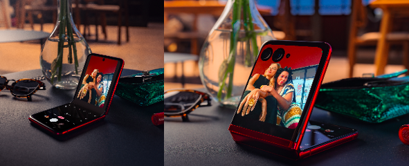 Con il nuovo razr, gli utenti potranno utilizzare lo smartphone come un treppiede con varie angolazioni grazie alla tecnologia Flex View, che offre nuovi modi di interagire, catturare e creare. Gli utenti possono scegliere facilmente l’angolazione del device e guardare comodamente ricette mentre si cucina, seguire le indicazioni del personal trainer online, fare videochiamate con gli amici e molto altro.