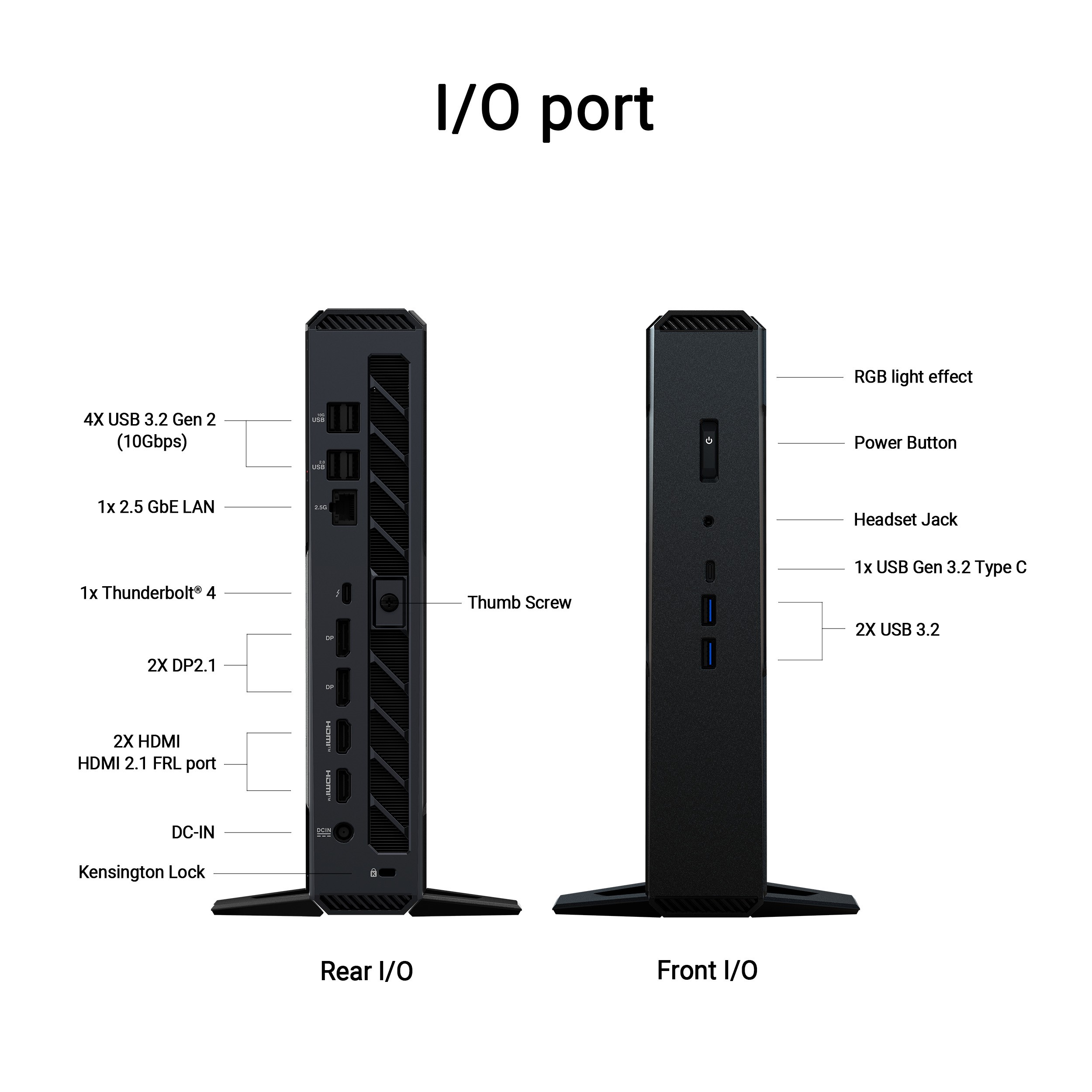 Il nuovo NUC ASUS supporta la connettività fino a cinque display grazie a due porte HDMI 2.1, due DisplayPort 2.1 e una Thunderbolt 4 Type-C con DisplayPort 2.1 integrato. Le configurazioni multi-display sono ideali per sviluppatori AI, professionisti in ambito fintech, tecnici di laboratorio e più in generale per tutti gli utenti business più esigenti.