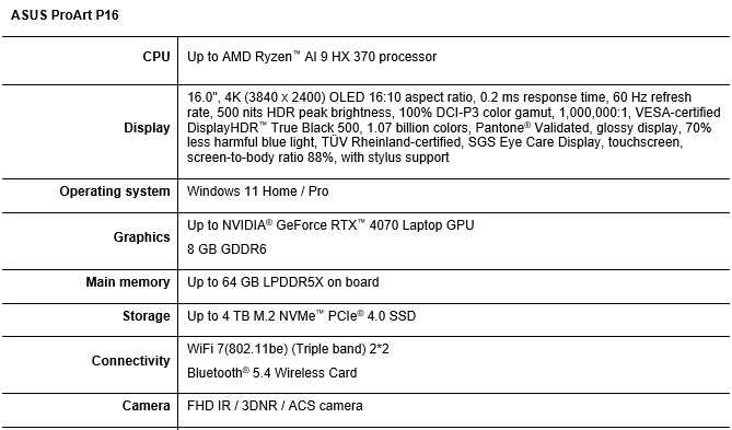 Caratteristiche dei nuovi ProArt P16 e ProArt PX13