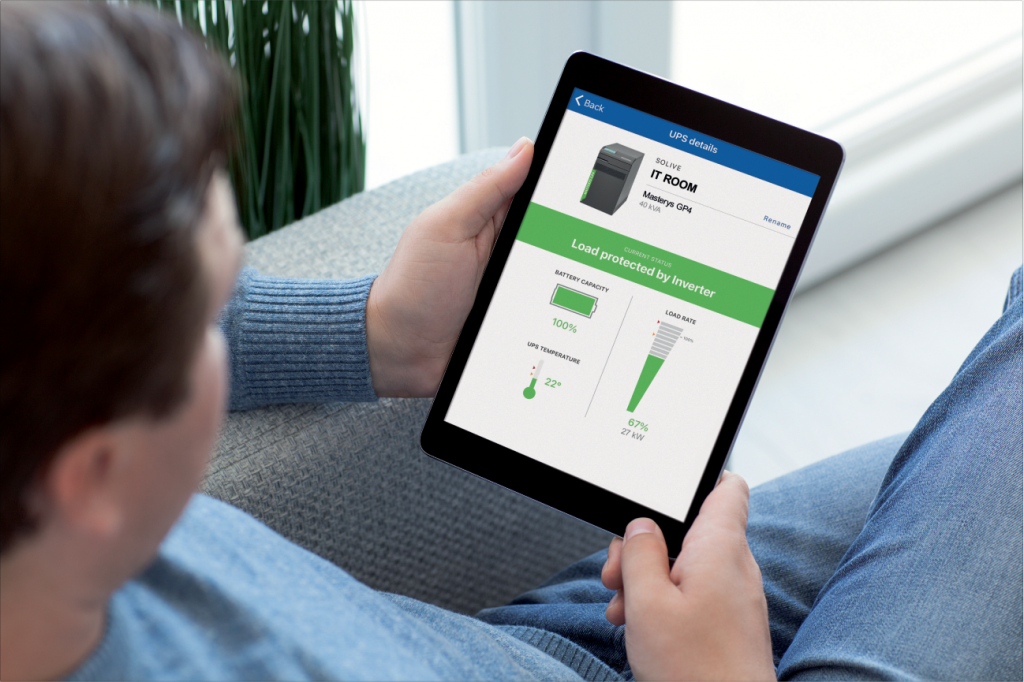 Inoltre, l’App SoLive consente il monitoraggio remoto dell’UPS da smartphone o tablet, sempre e ovunque. Grazie a notifiche in tempo reale degli allarmi e ad aggiornamenti di stato dettagliati per ogni UPS (stato corrente dell’UPS, livello e minuti di autonomia della batteria, temperatura di funzionamento…), l’App SoLive permette di gestire gli eventi imprevisti e di avere in ogni momento una conoscenza completa dell’ambiente operativo.